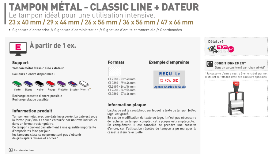 Le délai catalogue se calcule hors transport, week-end et jours fériés, pour toute commande reçue avant 18 heures le jour J, le cas échéant, sous réserve de réception du BAT.